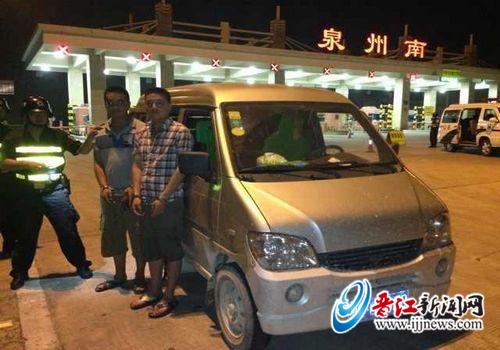 5月31日凌晨0时-3时,晋江市公安局治安管理大队于泉州南高速出口(紫帽镇)设卡盘查。当日1时30分许,一部闽C875××牌照面包车驶入卡点,车上两名人员神色慌张。治安管理大队民警迅速将该车引导进入检查区,检查时发现,车内散发出浓重的柴油味,后座载有10只塑料油桶。此外,还有大量疑似盗窃车油的工具。民警对该车两名可疑人员盘问,两人当即承认,车内工具确实是用来偷窃大货车柴油的。民警组将两人带回紫帽派出所。