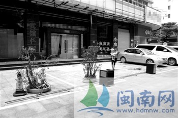 商户前的停车位被杂物给占了