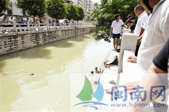昨日凌晨零时许,在泉州开出租的表哥、堂哥,陪着他在街头散心。3人走到泉州北峰桥头内沟河时,小赵什么话也没说,突然,翻过桥头的栏杆,跳下内沟河。