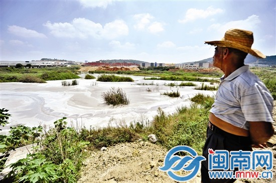 曾经的田地被乱倒的石粉掩埋,老伯很难过