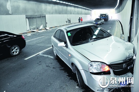 小车撞上隧道墙壁 来源:东南早报