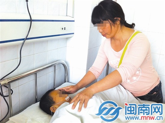 男孩躺在医院,母亲在一旁,时不时为他盖盖被子