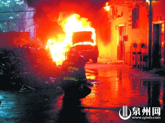消防官兵赶到现场灭火 本报讯 (记者 詹伟志 通讯员 戴小森 文/图)昨日7时30分,在石狮市八七路金沙大酒店对面的一条小巷子里,一辆正在行驶的小车突然着火。接到报警后,石狮消防大队湖滨中队立刻出动一辆水罐车和6名消防官兵赶到现场处置。 消防官兵到达现场时,只见一辆小车停靠在路边,车头及车身正在猛烈燃烧,轮胎不时地发出爆炸的声音,火势迅速扩张,引发小车上面的室外电线着火,浓烟顺着风向四处弥漫,空气中夹杂着刺鼻的烧焦味。指挥员立即下达作战部署,先通知电力公司断电,然后紧急架设水枪扑灭大火。20分钟过后,火势被基本控制。为防止小车再度复燃,消防官兵利用撬棍打开车前盖,对引擎盖进行冷却降温。 据车主陈先生介绍,他当时正开着小车,突然闻到一股烧焦的味道,发现车头冒烟,他马上拿着两个备用灭火器试图扑灭大火,无奈火势越来越大,他就马上报警。目前,事故原因正在进一步调查。 |