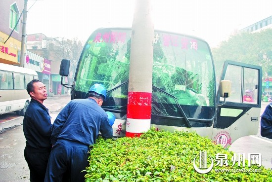 事发现场 早报讯 (记者 吴水保 黄祖祥 通讯员 丁琪泽 实习生 陈豪荣 文/图)昨日上午6时许,在晋江泉安中路罗山前堡路段,一辆疾驰中巴车为了躲避一位横穿马路的行人,失控冲上路边的花圃,撞上一根电线杆,所幸未造成人员伤亡。 据晋江交管三中队民警介绍,由于事发时间较早,中巴车上只有司机、售票员和一名乘客,没有造成人员受伤。 |