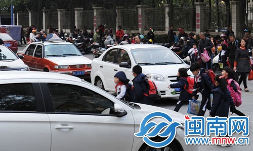丰泽区实验小学附近,小学生们走在车流中 东南网3月22日讯(海峡都市报闽南版记者 陈晓婷 张凯航 林莉莉 田米 谢杨 实习生 林素晶 刘淑清 文/图)那边100米外就有斑马线,这边短短20分钟时间,就有30多名小学生横穿马路;那边车流穿梭不息,这边孩子们成群在车流中“抢路”…… 这是昨天记者在泉州市区10所小学周边走访时,见到的一幕幕惊险场面。前天,丰泽区实验小学10岁男生在校门口斑马线被撞身亡事件(详见本报昨日A5版报道:泉州市区90后女司机校门口斑马线撞死10岁男生),引发公众对校园周边交通安全的关注。 记者在走访中还发现,应对校园周边交通隐患,其实也有不少好的做法。如在学生上学放学时间段,交警推着便移式红绿灯上路,管控校园周边车流。还有一些“爱心妈妈”在每天上下学高峰期,在学校周边引导小孩过马路。 如何为孩子们打造一条“平安上学路”?记者采访家长、学校、警方及教育部门等,从不同角度展开探讨。 |