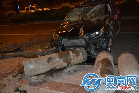 晋江一小车追尾后又撞水泥柱 司机逃逸找人顶替
