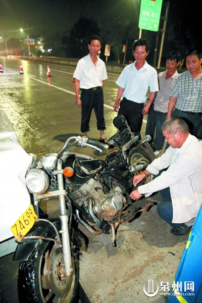 - 2014-06-12泉州火烧桥段一摩托车与货车相撞 男子被碾身亡