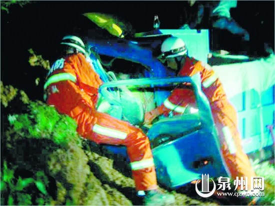 安溪西坪一货车撞到山坡上 车上两人一死一伤