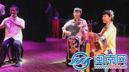 微电影播放前的南音表演 东南网6月26日讯(海峡都市报闽南版记者 吴月芳 通讯员 张俊扬 文/图)借南音名段之名,一部微电影《新三千两金》问世了。24日晚上,泉州师范学院音乐与舞蹈学院、泉州南音学院举办了一场“南音文化推广推介会”。这部微电影的制片人是在校的研究生,作为文化产业与南音文化推广专业的首批研究生,他们今后对泉州南音推广还计划用更多花样尝试。 昨天起,您可以登录海都闽南网(www.mnw.cn),点击“视频”网页观看《新三千两金》。泉州师范学院音乐与舞蹈学院院长王丹丹说,今后会与一家文化公司合作,推出南音主题系列微电影。 “三千两金”古今意不同 喜爱南音的老厝边不会陌生,南音《三千两金》的音乐,源自宋元古南戏剧目《郑元和》中的“莲花落”一折。说的是男主角郑元和上京赴试,途中迷恋歌伎李亚仙,至三千两金盘缠用尽,被迫流落街头与众乞丐为伍,沿街沿巷边演唱自诉身世的“三千两金”,边踏跳“拍胸舞”的情景。拍胸舞与音乐后来流入民间,广为传播。所以时至今日,跳“拍胸舞”大多配以“三千两金”音乐。 微电影《新三千两金》想说的,也是和钱有关的故事。该片时长8分多钟,说的是泉州姑娘阿月家贫,买不起心爱的琵琶。一日拾得手机,又遇到失主阿婆。阿婆从海外回乡,从小就喜欢南音,认为“家乡的南音像一根线,时不时把她牵回来。”凑巧的是阿月在乐器店重逢阿婆,阿婆慷慨相助,帮她买了琵琶。阿月慢慢靠近自己的梦想,却与阿婆失去联络,她一直记得欠阿婆一首曲子。后来阿月得到消息后,老人已经去世。故事的最后,阿月悠悠地以一曲《三千两金》告慰阿婆的在天之灵。
