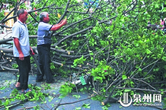 工人清理大树,拉出电动车。 骑车老汉被压 10余市民抬树救人 “我父亲骑电动车从这经过,树倒下来,人车都被压在下面。”在现场,伤者老杨的女儿杨小姐流着泪说,他们家在西街,她的父亲本来要骑车回家。 “事发时路过的车并不多,看到那个骑电动车的阿伯被压后,我们几个男的合力把树抬起来,那位阿伯就在另外一个人的搀扶下爬出来。”参与救人的王先生是附近一家服装店的老板。被救出来后,老伯估计也慌了神,大家搀扶他先坐下,附近店面的一名女店员还倒了水给他喝,不一会儿,120救护车赶到将他载往医院治疗。 “他说胸腹部很疼,无法躺下。”杨小姐说,她的父亲在担架上都躺不下来,只能坐着。树冠被清理后,杨老伯的电动车露了出来,记者注意到,他的电动车前轮被压变形。 市民怀疑 最近铺路挖断树根 事发后,鲤城公安分局海滨派出所民警接到报警,赶到现场进行处理。 好好的大树为何突然倒下?事发时天气晴朗,也没有刮大风。附近店面的店员说,最近该路段的人行道重新铺过,有可能是施工人员在开挖时将树根挖断了。 “我们观察了一下,树干、树根都没有虫蛀、腐朽的现象。”一位在现场处置的市园林部门工作人员介绍,这棵突然倒下的刺桐树,树龄有几十年。大树突然倒下的原因,他们还将进一步调查。 “伤者先治疗再说。”该工作人员说,他们已经安排工作人员到医院慰问受伤老伯,后期处理再具体协商。 昨晚,记者在二院急诊室看到受伤的杨老伯正躺在病床上。据杨小姐介绍,医生检查后告诉她,老人的腰椎和胸椎都有骨折。 来源:东南早报 |
