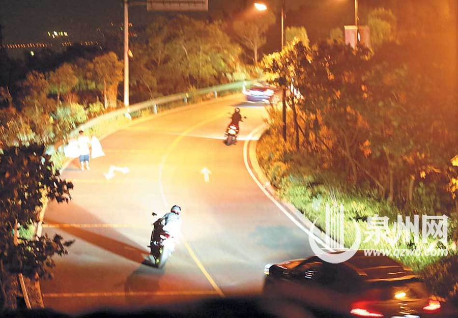 清源山上演“速度与激情” 深夜飙车马达轰鸣