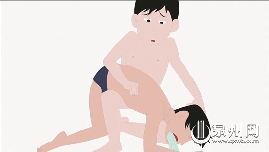(本组图片:晋江市教育局预防溺水主题宣教动画片截图) 相关链接 溺水如何急救 正确的溺水急救做法是拍遇溺者肩膀大声喊话,假如遇溺者没有出现咳嗽、眨眼、移动身体或其他任何反应,可判断为心脏骤停。这时应指定旁边人拨打120,同时观察遇溺者胸廓,假如没有起伏,说明呼吸已停止。由于溺水的致死原因是缺氧,所以心肺复苏的重点是缓解缺氧。 心肺复苏的做法是,让遇溺者仰卧在坚硬的地面上,让其仰头,用手往上提下颌帮助打开其气道,然后一手捏鼻子,一手把其嘴巴打开,嘴包住嘴向内平缓吹气一秒,假如胸廓有起伏则证明吹气有效。每吹气2次接30次胸外按压,胸外按压的深度大约为5厘米,至少达到100次/分钟的频率。重复吹气及按压的循环,有可能的话与旁人轮换施救,直到急救人员到达。 |