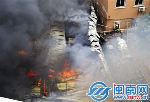 东南网9月30日讯(海峡都市报闽南版见习记者 陈紫玄 通讯员 张贵洪 文/图)昨天上午9时15分许,晋江市安海镇一服装厂发生火灾,近千平方米生产车间和仓库全被大火吞噬,毗邻的两栋民房岌岌可危。