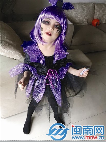 女汉子被妈妈装扮成蜘蛛精 特写2:4岁女汉子变蜘蛛精 每年10月31日万圣节是西方传统节日,可以说是西方的“中元节”,也就是鬼节。当晚小孩会穿上化妆服,戴上面具,挨家挨户收集糖果。 昨天上午,泉州东湖幼儿园也精心为孩子们筹备了这个节日。陈女士一星期前就接到幼儿园老师的通知,特别在网上为四岁的女儿淘了套“蜘蛛精”的衣服。她说,其他女孩子肯定都会梦幻着“白雪公主”或“灰姑娘”的造型,她得让自己的女儿有点不一样,要不就太不衬她那“女汉子”的形象了。 孩子们在老师的带领下,也玩起“发糖果”的游戏。幼儿园方希望孩子们在这种节日氛围中,能多了解一些异域习俗;通过扮演不同角色,丰富孩子们的想象力。 |