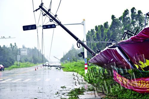 昨日13点56分,净峰高速公路出口路段,一块大广告牌被大风吹倒,成排电线杆被刮倒 南惠高速公路净峰镇出口 广告牌压断电线杆 6000户断电6小时 昨日中午12时许,南惠高速公路净峰镇出口处,矗立在路边的一大型广告牌被狂风吹倒,砸中空中电缆后,4根电线杆也应声而倒,造成惠安县东桥镇、净峰镇大面积断电。 事发后,惠安电业局东岭中心供电所抢修队赶往现场抢修,东岭供电所张所长介绍,狂风暴雨给抢修增大了难度,直至昨日傍晚6时30分许,抢修才陆续完成,受影响的6000余户居民恢复用电。