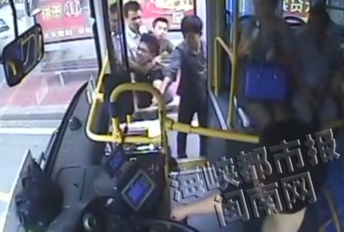 惠安一男子紧拽公交门喊“传销” 4男死拉住他称是小偷
