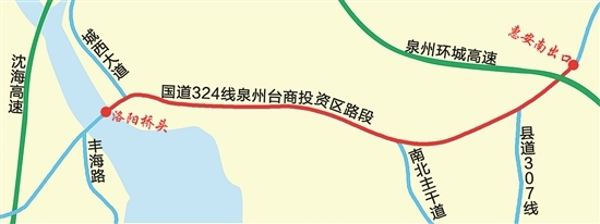 国道324线泉州台商投资区路段拓改 全长8.2公里,拓宽至六车道,争取明年春运前通车;施工期间分流管制 拓改路段位置图 (海明 制图) 核心提示 “国道324线泉州台商投资区路段一侧封闭已久,不知道什么时候改造完成?”近日,市民张先生致电本社24小时热线96339咨询。昨日,记者从国道324线泉州台商投资区段拓改工程建设指挥部获悉,该路段拓改工期18个月,力争明年春运前主车道通车,2016年12月前竣工完成,拓改之后该路段将实现“五个转变”。有关部门已实施交通分流管制,请过往车辆尽量绕行,注意安全。 □本报记者 吴志明 现场 道路一侧封闭 车辆通行缓慢 昨日上午,记者乘车从泉州市区沿国道324线往惠安方向行驶,沿途看到不少关于道路改造的大型提示牌、警示牌。过了洛阳桥来到洛阳村委会路段后,泉州往惠安方向的右侧车道被封闭,路上立着“右道封闭,向左行驶”的提示牌,只剩下左侧两个车道通车,车道中间用反光柱、反光锥等隔开,供车辆双向通行。 因车道变窄,许多车辆经过时不得不减速慢行,但秩序井然,未出现拥堵现象。在被封闭的右侧车道,不少挖掘机正在挖掘水泥路面,有些路段则在对管道进行铺设,整条道路施工繁忙。 |