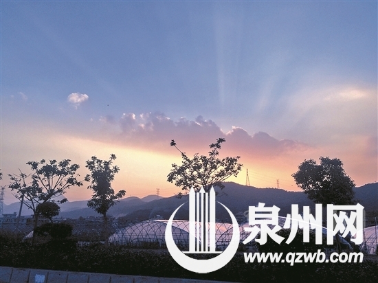 昨日下午4时54分,洛江区万虹公路上,夕阳西下,霞光绚丽如幻,树木墨色似描,构成了一幅冬日美景图。