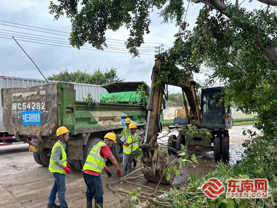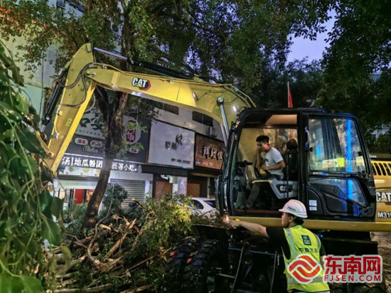 中建三局应急抢险突击队在鲤城常泰路清理路面树木残枝。中建三局 供图 突击队员们攻坚的身影出现在古城新区,他们在鲤城常泰路切割清理倒伏的树木残枝、在丰泽城北路吊运大块树枝树干、在丰泽泉山路协助扶正和种植树木、在惠安县城协助道路积水和杂物清理、在晋江、石狮等地也助力协调机械设备...... 鲤城区常泰路一带路面树木残枝及灾后路面杂物较多,原本就较为狭小的两车道变成了拥挤的单车道,居民出行极为不便。突击队紧急调动10名人员、1台挖机、2台土方车、2部油锯赶往支援,切割、搬运、吊运、清扫......大家沿街一路清扫下去,执行迅速有力,机械和人力配合有序,路面逐渐通畅明朗,路过的车主和居民都纷纷竖起了大拇指,还有住在沿街的居民为突击队送来了饮用水,暖意十足。 丰泽城北路普明片区一带受灾严重,路面被倾倒的大型树干及树枝盘踞,严重影响道路通行,中建三局应急抢险突击队第一时间集结1台大吊车、3台随车吊和15名工人火速赶往,优先将树木残枝吊离运走,恢复交通。路边有一私家车被大树压住,车主十分焦急,突击队和市政园林局默契配合,用吊车将树干吊住,再用电锯切割,随后将压住车子的树干吊到土方车上。看到车子“获救”,车主不住地表示感谢。随着路面上最后一块大树枝吊离,3辆随车吊、2辆土方车迎着灯光满载而去,时间不知不觉已到了晚上10点。