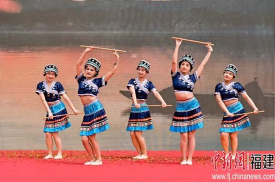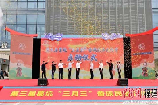 中新网福建新闻4月12日电(吴有森 苏启彬 木易) 春意盎然,万物复苏,在这生机勃勃的季节里,葛坑龙塔畲族人民迎来了一年一度的传统节日——“三月三”。在这个重大的节日里,畲族人民欢聚一堂,以歌传情,以舞庆节,共同传承和弘扬着畲族优秀的传统文化。