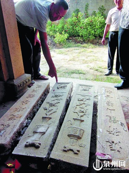 昨天早上,泉州少林寺释常定方丈带领众武僧晨跑时,发现路边有一堆古牌坊构件,立即拨打本社24小时热线96339。