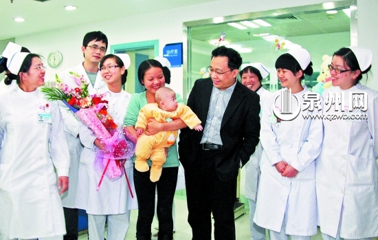 德化大肚男婴小洪彬康复出院 告别"大肚"(图)