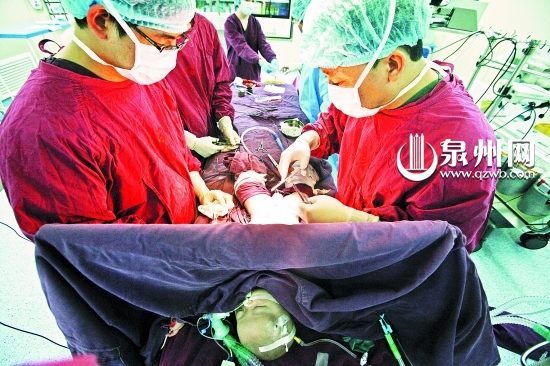 王祖耀(右)为小洪彬做巨结肠根治术。