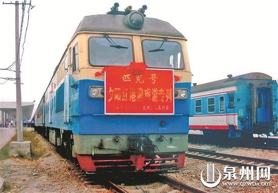 2002年5月,泉州首次开通夕阳红旅游专列,乘客到港澳旅游。(吴刚强 摄) 转变:开行货物专列 运输零散货物 今日起,泉州火车东站将专门从事货物运输。以往泉州火车东站办理的大宗货物主要到达成都、昆明、四川、重庆、广东、广西等全国各地。为了延伸铁路服务,9月19日起,铁路部门通过开行货物专列,增加零散货物运输,改变了铁路运输以往只受理“粗、大、笨”的整车、大宗货物运输的状况。如今,泉州火车东站每天17点38分开行X762赣闽货物快运列车,一个小小的订书机也可以通过铁路进行快递。除了该车站以外,大深、福德、感德、剑斗、湖头、金谷、安溪、南安、石砻均可办理零散货物运输。客户可通过12306网站“我要发货”、12306网站客户自助平台、12306客服电话、快运业务办理站电话、快运业务营业网点、铁路人员上门服务、南铁百灵微信、QQ平台等8种渠道,快捷办理零散货物快运业务。 据介绍,赣闽货物快运列车具有速度快、运费低、受天气影响小、方便快捷、绿色环保的优势,列车等级为快速货物班列,运行时速最高为120公里,比过去的货车时速提升了一倍,物流周转能力大大加强。赣闽货物快运列车的运输实现“一日达”“次日达”,确保货车“客车化”开行。列车随车配备了货运、检车、装卸等工作人员,每个办理站和每列车均配置了叉车、手动液压拖车、手推车、集装笼、托盘、渡板和应急灯等设备,满足快装快卸需求,缩短列车在站停留时间。