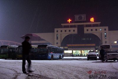 雪夜,公交车停靠在十堰火车站广场。全盘民营化已5年的十堰公交事业走到了十字路口