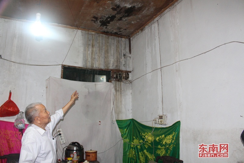 虞洪正老人只能驻着拐杖走路 21日上午,三明下起了小雨,东南网记者来到了老人虞洪正的家中,位于三元区新市南路166号4幢的一座有30多年历史的老房子,通往老虞家的路已破旧不堪,周边房屋已陆续拆迁,到处是泥石,邻居都搬走了。 记者到访时,老虞当时正在厨房烧火煮饭,老虞的卧室在今年5月已经被泥石流冲垮,一面墙体倒塌,房间堆满了石头和泥土,老虞只能把床摆到客厅居住。“石头都砸到了床铺上,无法住了,就搬到外面一间,但客厅屋顶还是到处漏水。”老虞说。 老虞妻子十几年前已过世,但他还有一名从小收养的儿子,就住在同一个小区里,相距不到200米,房屋被泥石流冲垮后,他曾搬去了和养子虞某一起居住。不过,老虞说,养子并没有给他配大门的钥匙,出门相当不便,还经常受到了养子和养媳的语言暴力。