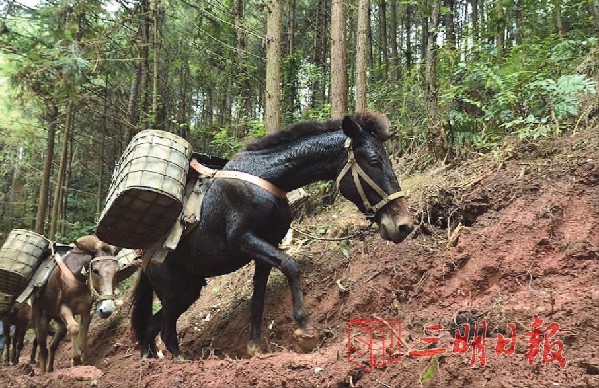 近日,宁化县城南乡班竹村附近活跃着一支毛驴搬运队,天天从山脚往山顶移动通讯发射台工地运输沙石、水泥、钢材等建筑材料。