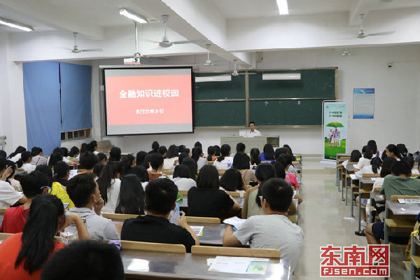 东南网三明9月29日讯 9月28日晚,农行三明分行走进三明学院开展“金融知识进校园”活动,为2017届旅游管理与服务教育专业新生上了一堂生动的“大学生金融知识讲座”。讲座内容丰富多彩,包括:我国目前的金融机构体系、财务管理、支付工具、个人信息保护、个人信用及如何识别不良校园贷等内容,引起了同学们的浓厚兴趣,整个讲座过程同学们热情参与,积极互动,现场气氛活跃,取得了良好宣传效果。