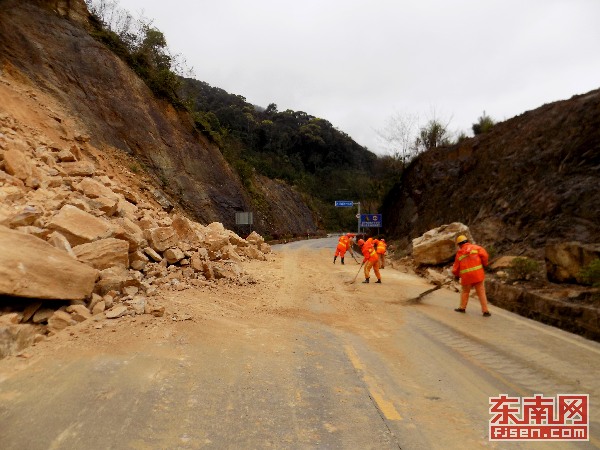 人工清理(陈发仁/图) 人工破碎石块(陈发仁/图) 东南网三明3月1日讯 (通讯员 陈发仁)受连日降雨影响,2月28日上午8时许,国道356线永安市安砂-清流路段K365+700左侧发生溜方,大石块滚落侵占路面,交通受阻。