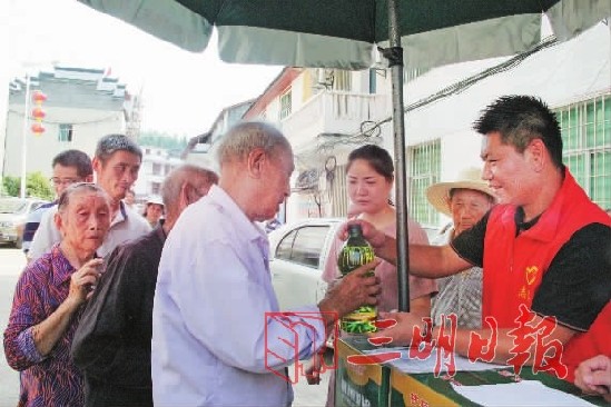 8月16日,适逢宁化县方田乡圩天,永安凯利粮油发展有限公司在该乡举行“扶残敬老、与爱同行”橄榄食用调和油捐赠仪式,现场为符合条件的对象送上橄榄食用调和油。分发标准为建档立卡残疾人贫困户每户1.5升的油一瓶,80岁至90岁的残疾人每户0.9升的油一瓶,90岁以上的残疾人每户0.9升的油两瓶。 “我今天很开心,没想到能领取免费的油,很感谢。”80岁的曾平秀高兴地说道。当日上午,和曾平秀一样免费领取到油的,还有60多人,他们都是方田村建档立卡残疾人及80周岁以上老年残疾人。 永安凯利粮油发展有限公司是一家专业油脂生产厂家,年生产能力达4万吨。这次共为宁化227个村(社区)的残疾人家庭以及全县敬老院、残疾人康复中心捐赠了3500瓶橄榄食用调和油,总价值为15万元。(雷露微 文/图) |