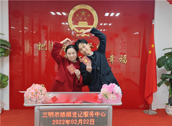 “20220222”最有爱的一天 三明迎来结婚登记潮