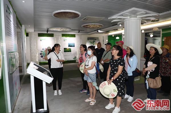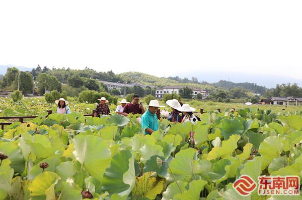 参观修竹荷苑。 东南网8月30日讯(通讯员 曾程 文/图)8月27日至30日,三明市建宁县开展“团聚莲乡·共话振兴”海峡两岸乡村融合发展交流活动。来自台湾各地的19名村里长及基层民众赴建宁县进行交流参访,共谋合作发展新机遇。