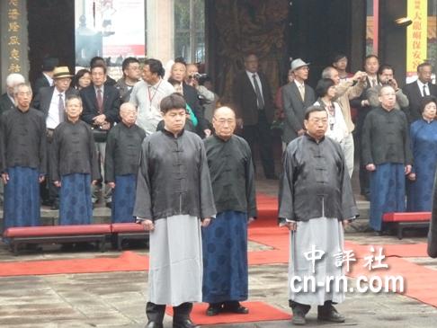 保安宫是台湾相当知名的庙宇 东南网4月6日讯 据中评社报道,农历3月15日保生大帝诞辰,台北保安宫举行圣诞祭典,依例以三献古礼进行,由台北市长郝龙斌上香主祭,由鼓初严到迎神、唱保生大帝灵应赞,至望燎后结束整个典礼,场面庄严肃穆。位于台北市大同区的保安宫5日上午举行隆重庄严的三献礼,以表达对大道公慈悲护世的感谢及敬意,下午于保安宫庭园进行过火仪式,以2000斤木炭铺成10公尺的火龙,由道长率领各祖力士会扛神舆、神尊走过火龙,洁净地方,同时展现保生大帝神威显赫。 保安宫上午先在正殿举行三献礼仪式,大龙国小佾生在丹墀上献上四佾舞,保安宫云衷合唱团齐唱“保生大帝灵应赞”,进馔,供品置于神案上,由主祭者带领上香、三叩首。 祭典最主要是初献礼、亚献礼、终献礼三个阶段,每一回合都要献爵、献财帛并行三叩首礼、恭读祝文;三献之后撤馔、望燎才算圆满。三献礼全程伴随着保安宫乐团的奏乐,主祭者与分祭者身着长袍马褂,礼生带位各司其职,井井有条的先后次序表现出古礼的节度肃穆,以及华夏文明优雅的礼仪规范。