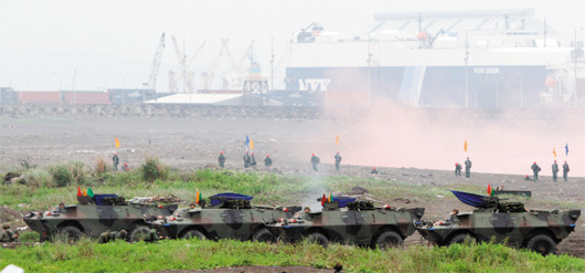 台湾左营军港汉光演习 海、陆军先发演练(图)