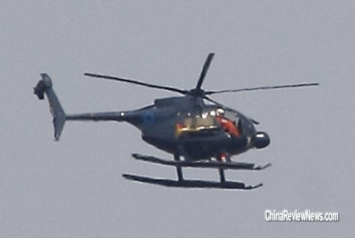 海军在左营港外海实施空中观雷科目。图为500MD/ASW反潜直升机进行空中观雷。