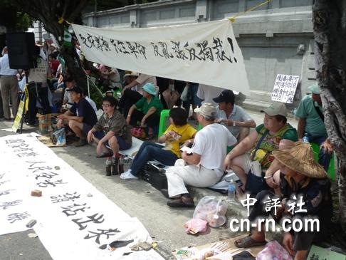 民进党号召上百名支持者在府前静坐,进入第3天。