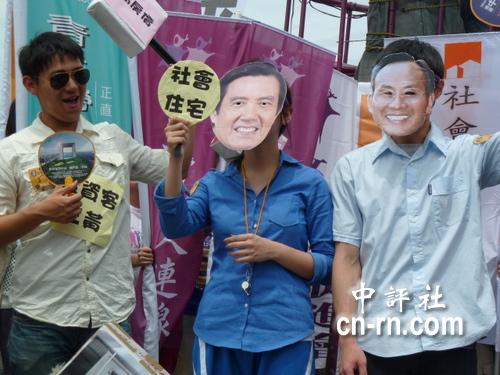 戴着马英九面具的青年学生表达不满 东南网5月2日综合报道,物价、房价越来越高,台湾劳工苦不堪言,劳工团体1日上午在凯达格兰大道举办讽马运动会,批评马当局许多“前债未清”,要当局具体回应“崩世代”的困境。劳团也发表“51宣言”。 产业总工会则带领数十个工会代表到“立法院”门口表达心声,并表演行动剧“拼出你的血汗人生”,呈现弱势劳工和家庭落入贫穷及恶性循环的惨状。 |