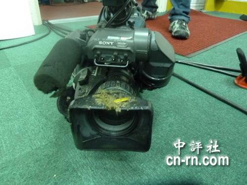 组图:绿军乱丢牛粪弹 记者摄影机也难幸免
