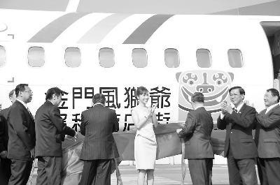 东南网-福建日报3月13日讯(驻台记者 林娟 文/图)已进入施工最后阶段的金门风狮爷免税商店街昨日举行吉祥物风狮爷安座仪式,两岸众多嘉宾、厂商与会。岛内知名女主持人侯佩岑应邀担任幸福代言人。金门风狮爷免税商店街预计下半年开始运营迎客,为赴金门游的大陆游客提供购物好去处。 由台开集团兴建的金门风狮爷免税商店街整体面积7.45公顷,包括号称两岸最长的398米免税商店一条街及影城娱乐空间。风狮爷是金门的守护神,金门风狮爷免税商店街以“幸福”为市场形象定位,主打安心、安全、信赖的台湾优质商品与国际精品。 又讯:昨日,台开集团与台湾复兴航空合作推出“风狮爷彩绘机”,并举行首航仪式(上图)。未来将有3架带有蓝色风狮爷标志的彩绘机往返台北、金门航线。 |