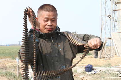 金门一处工地挖出230枚机枪弹 工人恶搞披上身