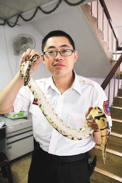 图片来源:台湾《联合报》 中新网4月15日电 据台湾《联合报》报道,台湾新北市一辆客运公交车前晚(13日)收班后,司机在最后一排座椅脚踏板发现一条蛇。消防人员据报赶来,抓到这条1米长的“非洲球蟒”,分析是乘客遗失或丢弃的宠物蛇。 该客运站副站长许金振说,“第一次看到公交车的遗失物是蛇”。 许金振说,现行规定小型宠物犬、猫如果装在笼物箱内,可搭乘公交车,大型犬除导盲犬外,不可以乘车,宠物蛇恐会造成乘客惊慌,司机也会婉拒上车,除非乘客偷偷夹带。 他说,这条蟒蛇看起来很干净,应该是有人饲养,目前没有人向总站报遗失要求认领。这条蛇暂时放在消防队,今天将送交动保处公告12天认领,如果没有人认领,即接受认养。 新北市府动保处动物保护组邱国皓表示,球蟒是短胖型蟒蛇、无毒且个性胆小,体长约120厘米,非保育类动物,台湾很多人养,售价依品种不同从一千至数千元(新台币)之间。 由于球蟒是热带动物,多养在室内水族箱或养爬虫的网室,得长时间保温。 |