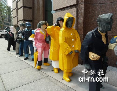 台湾雕塑大师朱铭的人间系列作品─排队。(中评社邹丽泳摄) |