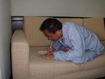 陈水扁在北荣病房,模拟趴在北监地板写字。图片来源:台湾今日新闻网 中新网4月24日电 据台湾今日新闻网报道,民进党台北市议员江志铭19日透露,陈水扁听闻移监的前一夜,曾上吊自杀,但台当局法务部门和台北监狱否认。陈水扁的儿子陈致中23日深夜表示,脑神经学医师陈顺胜与北荣医师郭正典医师22日发现阿扁的颈部,有一道13厘米长的红色勒痕! 陈致中23日晚间引用陈顺胜在电视节目的谈话,直指台当局“法务部”与北监的行动是“挂羊头卖狗肉,一场惊世大骗局!” 陈致中在个人社交网站表示,陈水扁没办出院,也没办入院,没有病历,没有主治医师,也没有病床号码,住的地方不是培德医院,而是监狱的一区;“所谓243坪(1坪= 3.30平方米)是十几个人共享,何来独享?” 陈致中还说,“这不是转院,这是移监!”陈顺胜及郭正典医师22日在台中监狱发现陈水扁的颈部,有一道13公分长的红色勒痕。 另外,陈致中24日凌晨也在个人社交网站发文,4月19日直捣“法务部”、声援陈水扁的15位民进党“立委”包括邱议莹、许智杰、陈亭妃、叶宜津、高志鹏、许忠信、姚文智、李俊俋、陈其迈、萧美琴、蔡煌琅、邱志伟、李昆泽、赵天麟、魏明谷等人。 |