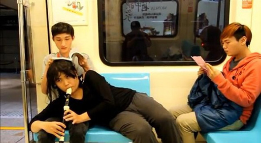 网友恶搞台湾地铁“活春宫” 外套里能做什么?