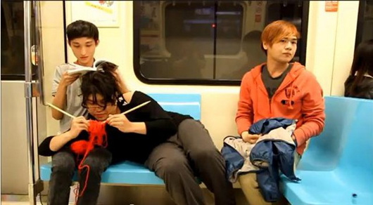 原标题:网友恶搞台湾地铁“活春宫” 外套里能做什么?