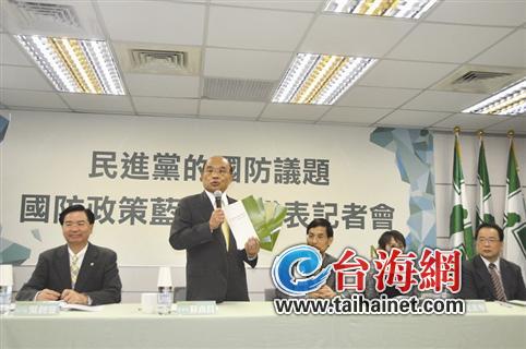 东南网6月7日讯(海峡导报驻台记者 吴生林 文/图)昨天下午,民进党发表台湾“国防政策”蓝皮书,提出对各项“国防”议题的方向性看法与主张。其中,蓝皮书指出,未来若民进党执政,将会大幅提高军事投资经费,以“国防预算”占GDP的3%为目标;同时,也会增加武器研制经费在 “预算总额”中的比例,把重点放在下一代战斗机、无人机、潜艇和不对称武器的研制上,加强信息战的攻防能量。 31位退将参与,包括国民党籍 昨天下午3点,民进党主席苏贞昌亲自出席“国防政策”蓝皮书发表会,以示重视。 苏贞昌介绍,之所以叫“蓝皮书”而不叫“白皮书”,代表这并不是民进党最后最完整的确定政策,而是民进党主动抛出自己方向性的、初步的想法与主张,希望引起朝野以及民众对“国防”议题的讨论与重视,并提出更多的建议。 苏贞昌介绍,2012年9月自己就指示民进党的智库(新境界文教基金会)成立独立运作的“国防小组”,深入研究“国防议题”并形成民进党的方向性主张,通过多元的参与最终才拟定这份蓝皮书。他说,过去九个月中,这个小组已经开了14次会议,共有31位退役将军参与,其中包括国民党籍的退役将领。 对于这份蓝皮书的出炉,苏贞昌表示,“这是民进党迈向未来执政准备时,在‘国防领域’内的自我训练与学习的重要里程碑”。 |